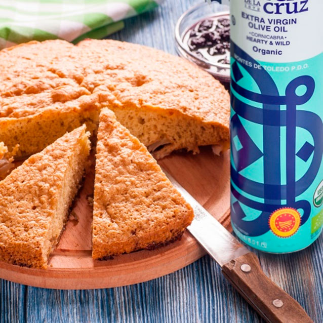In the large bowl with the dry ingredients, make a well in the middle of the flour mixture. Add the wet mixture (the sugar and García de la Cruz Extra Virgin Olive Oil mixture) into the well. Using a wooden spoon, stir until just blended; it will be a thick batter (do not add anything to loosen it).